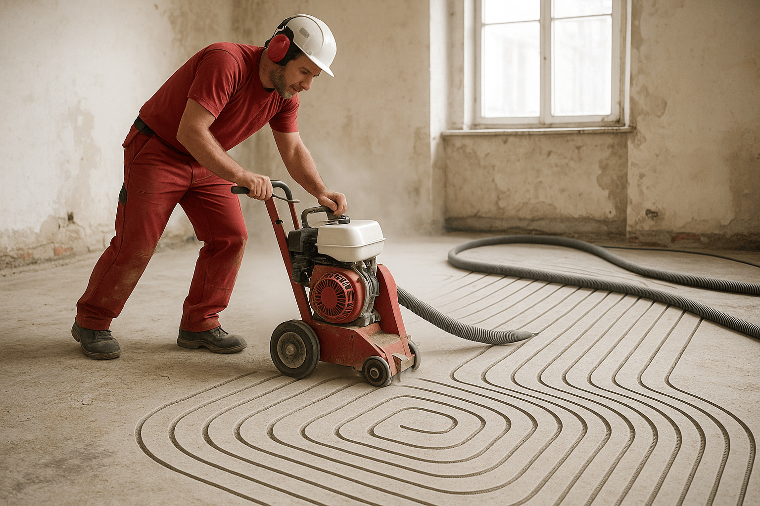 - Fußbodenheizung fräsen: Kanäle direkt in Estrich oder Beton